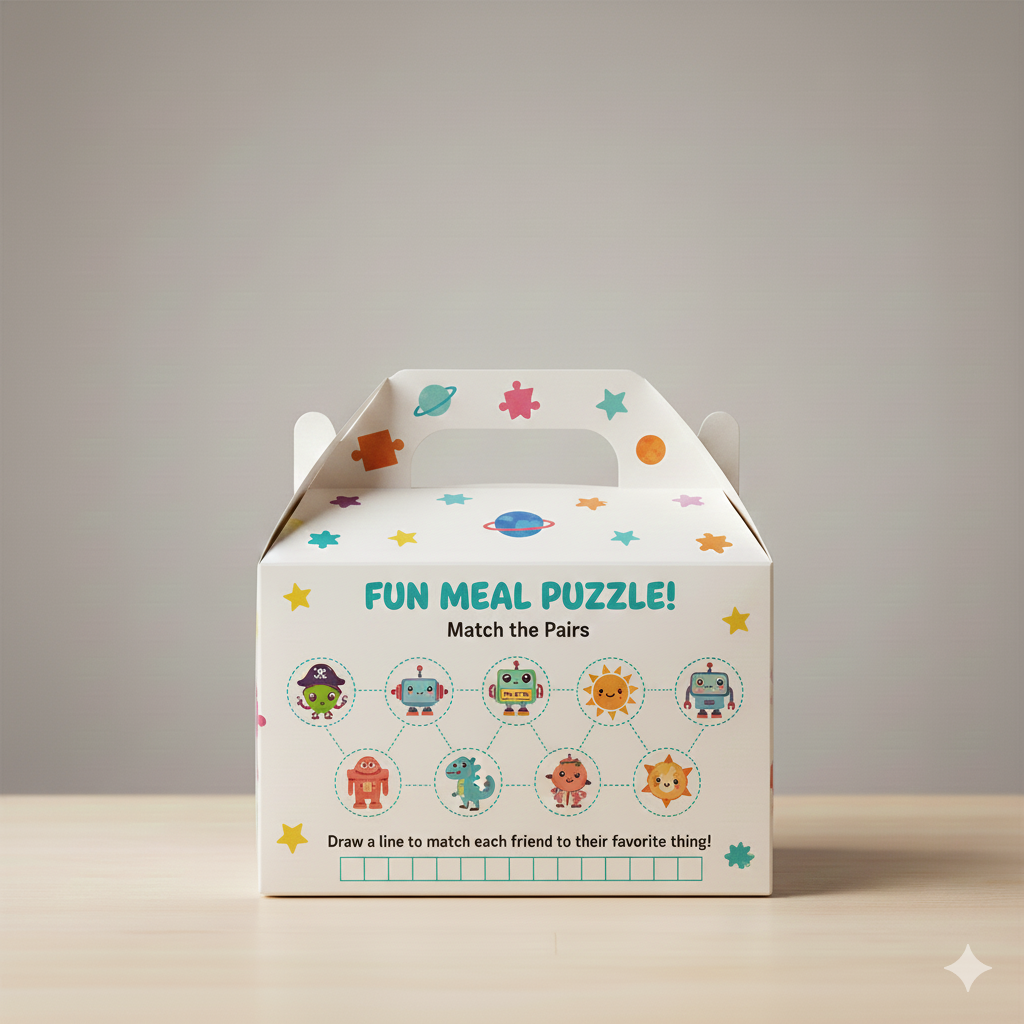 Our boxes are manufactured using premium, food-safe paperboard with vibrant, odorless HD printing. This production excellence makes our kids menu boxes the ideal partner for our Industrial Burger Boxes and Professional Fry Packaging. We focus on weight-bearing integrity and seamless folding mechanics for fast-paced kitchen environments.